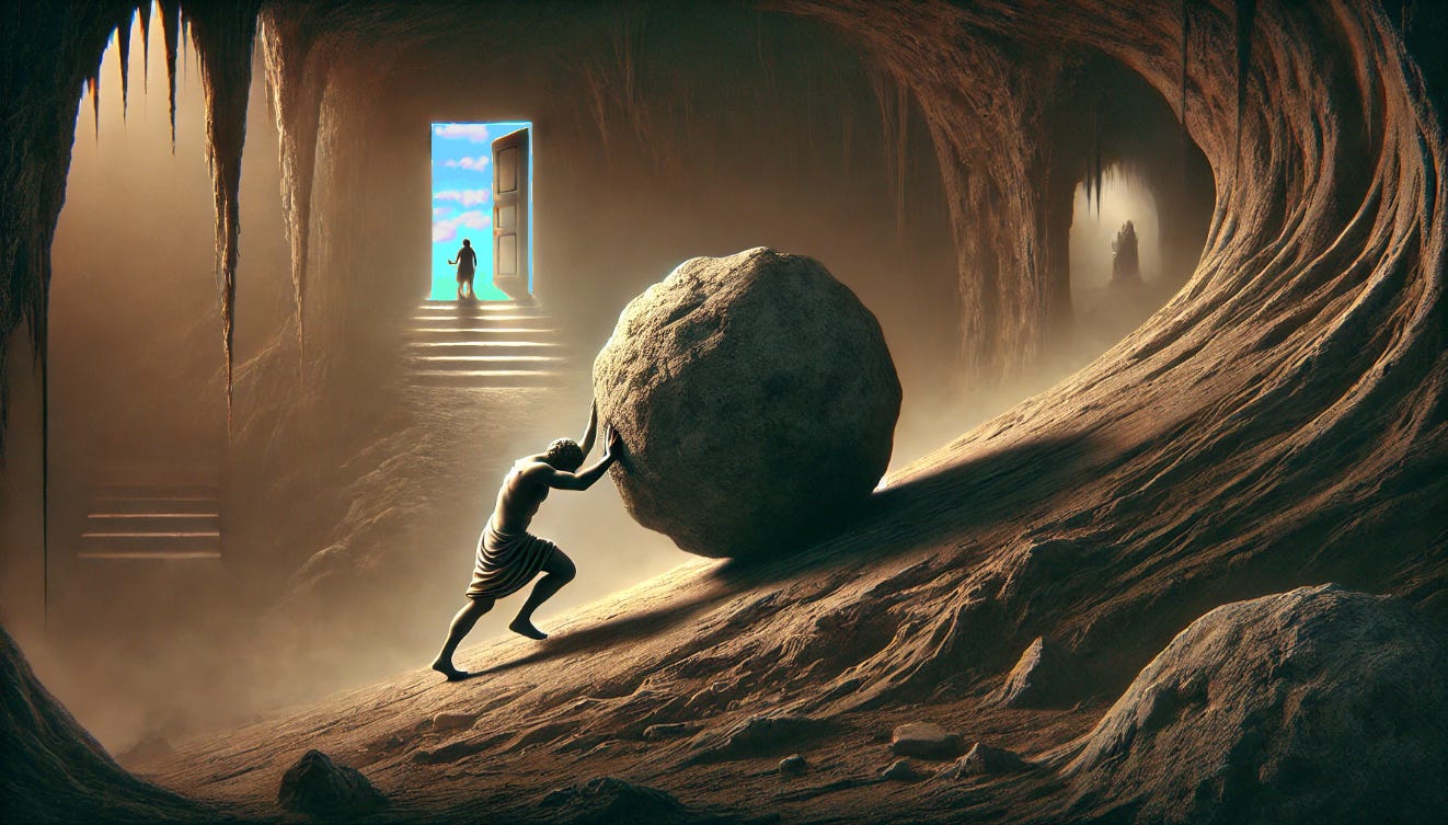 You will recall that in Greek mythology, Sisyphus was punished in Hades with the task of pushing a boulder to the top of a hill. The torture, of course, was that the boulder could never reach the top—it would roll back down every time, just as he neared the summit. Thus, he was cursed with never-ending failure and frustration—a pointless exercise for all eternity.