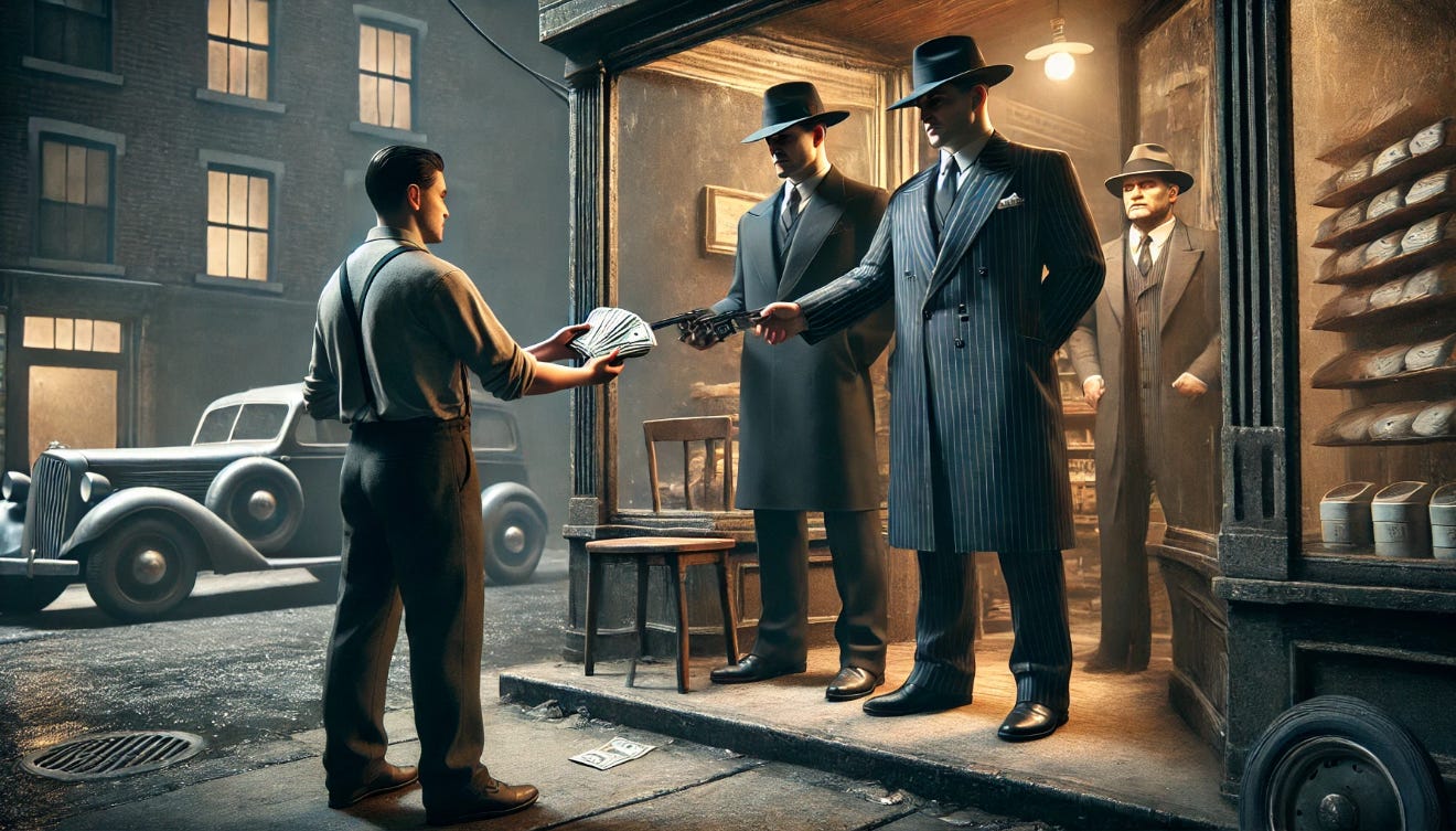 And make no mistake—it is a mafia. What else do you call a group of men with unctuous, vaguely threatening smiles who send armed goons to your house if you do not pay them the protection money they demand?