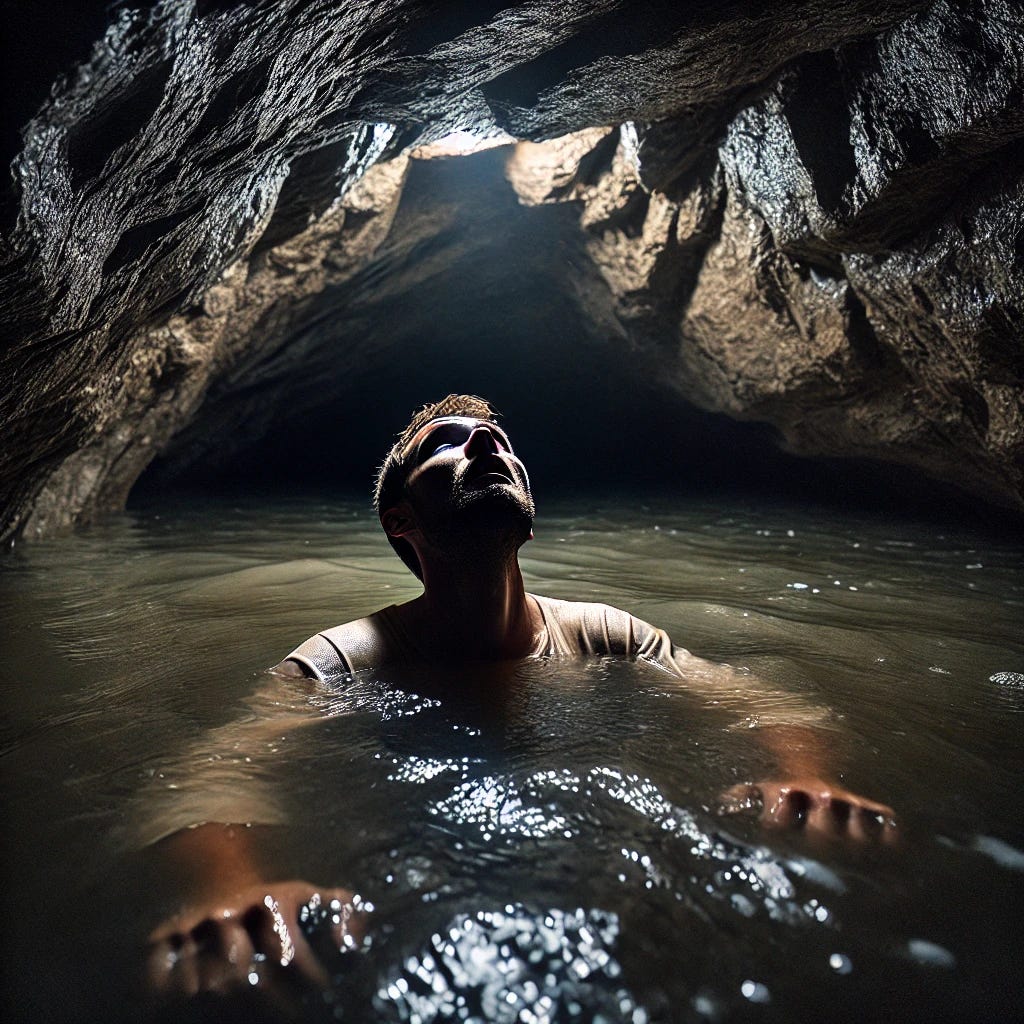 The cave is filling with water. Time to swim out. (DN 1.20)