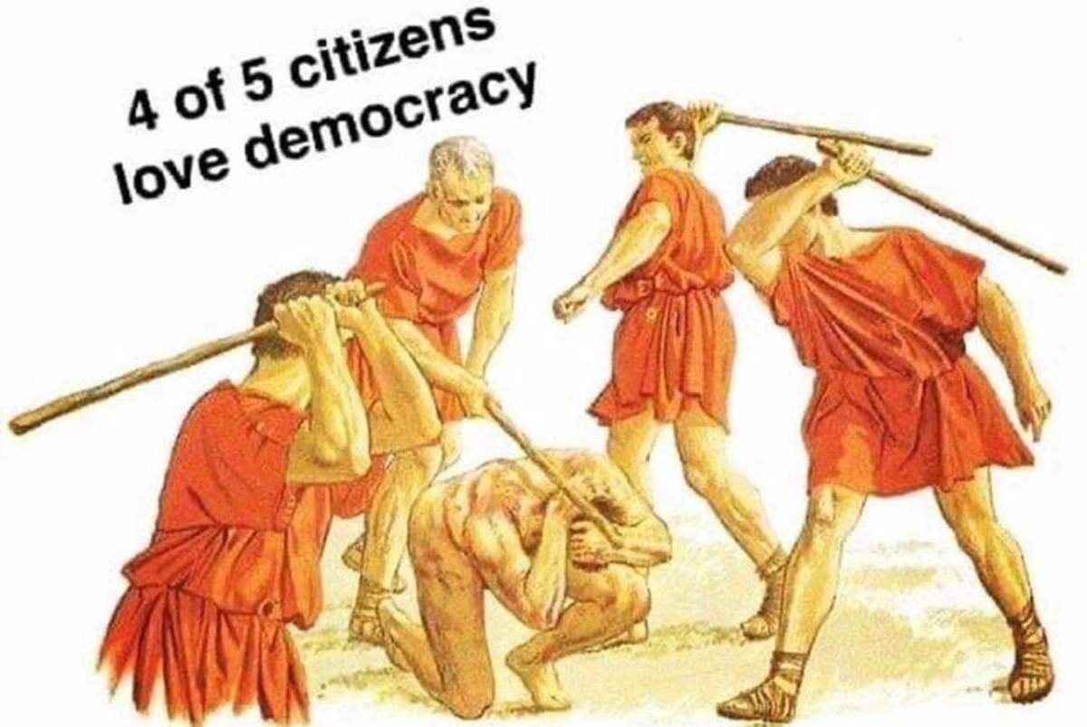 Do you get it yet? The fundamental supposition of all democracies is WRONG. And yes, for the love of crumbcake, that includes the American constitutional republic in its original form.