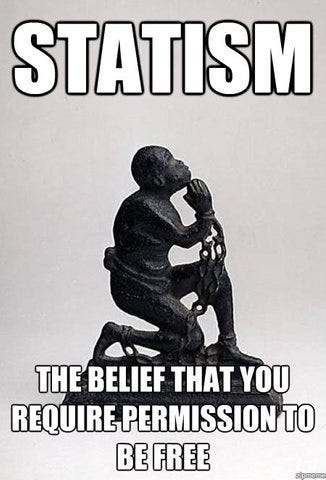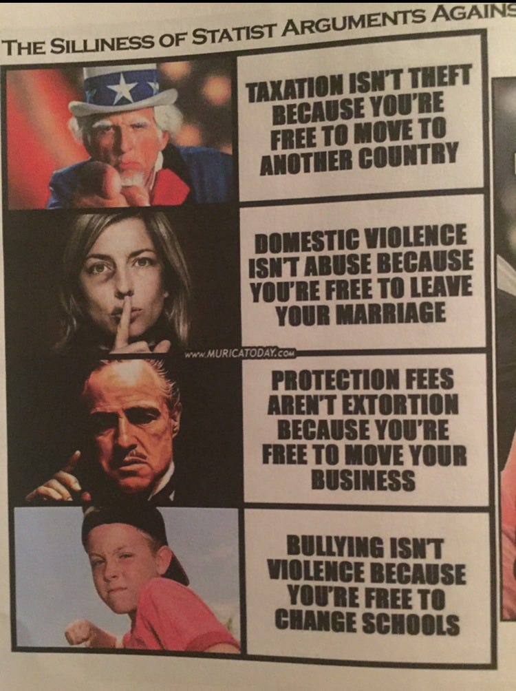 We recently talked a bit about the absurdity of the “you can always move” argument. And the second frame is certainly related to this popular piece: The Day I Forced My Wife to Marry Me. However, it’s #MemeMonday, when we ease into the week with some good pro-freedom/anti-statism memes…so I will stop with the preamble.