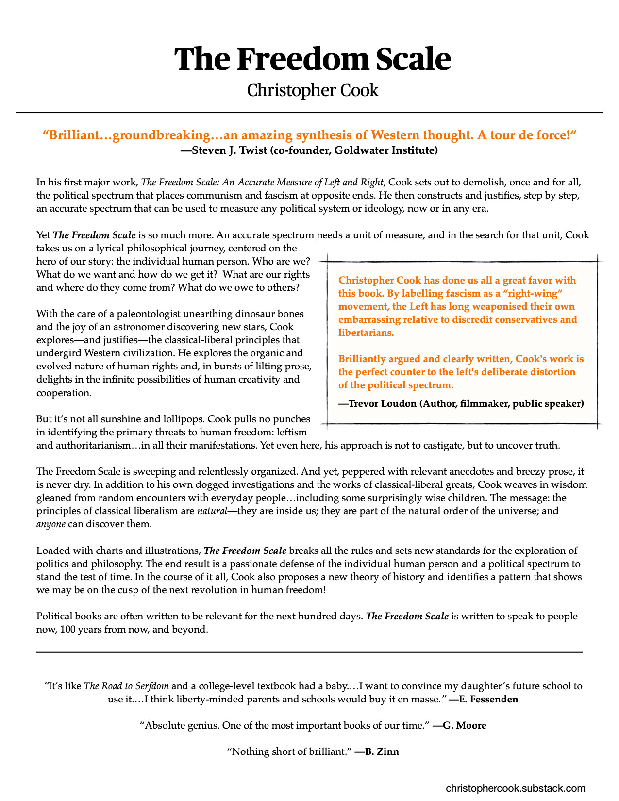 Starting today, I will begin releasing installments of The Freedom Scale to Supporting Members, here on my Substack of the same name. To help convince you that it is worth it, here is a one-page description, along with testimonials from some of the book’s first readers.